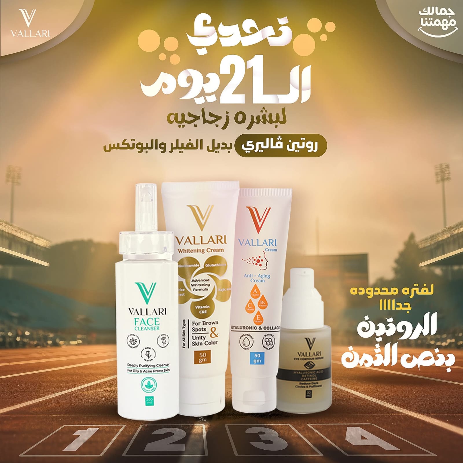 لو بتدوري على حل سحري لكل مشاكل بشرتك، فاليري جابتلك الحل! مع مجموعة العناية بالبشرة ، تقدري تحصلي على بشرة أحلامك بسهولة وفي 21 يوم بس!